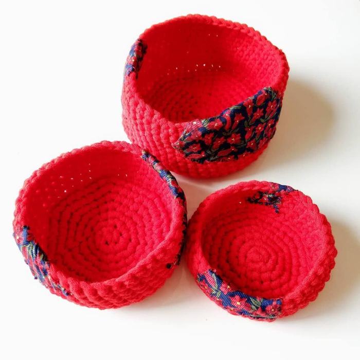 Set di tre porta oggetti, cm 12 - 10 - 8Completamente fatto a mano100% lana (fettuccia)100% seta (applicazioni)Commissione.Ultimamente sto studiando il colore applicato agli oggetti che arredano gli interni: piรน un colore รจ caratterizzante e "potente", piรน ne andrebbe usato poco. Piรน si esagera e piรน scompare. Il Rosso รจ tra quelli e la casa … Continua a leggere SET ROSSO